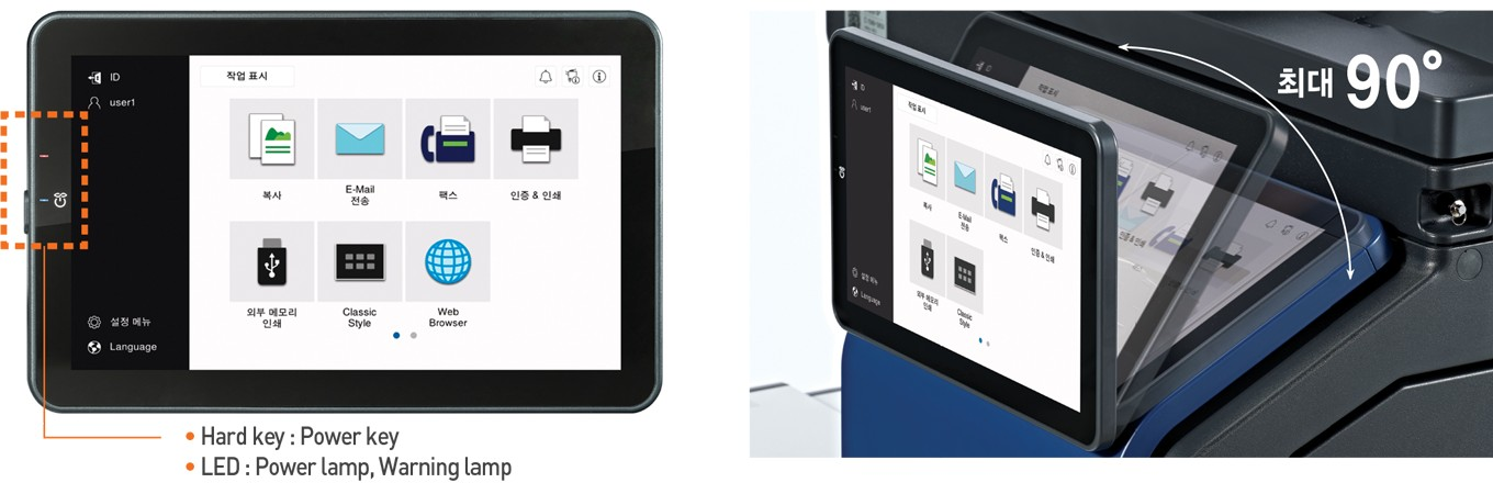 D470 시리즈는 스마트폰이나 태블릿과 같은 익숙한 조작성으로 사용자 편의성을 향상시켰습니다. 10.1인치 컬러 LCD의 대형화면을 장착하여 다양한 IT 서비스를 쉽게 사용할 수 있으며 더욱 선명한 화질감으로 작업의 효율성을 높였습니다.